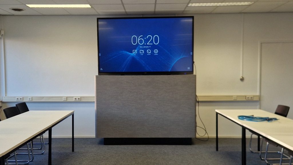 Het grote 86 inch beeldscherm is voorzien van een hoogwaardige matte beeld laag. Hierdoor worden hinderlijke reflecties van daglicht en verlichting tot een minimum beperkt. Zelfs in fel lichte ruimtes blijft uw presentatie scherp, helder en goed leesbaar. Het grote formaat (display= ca. 2.0 x 1.2 meter) zorgt voor optimale zichtbaarheid, ook achterin de zaal.