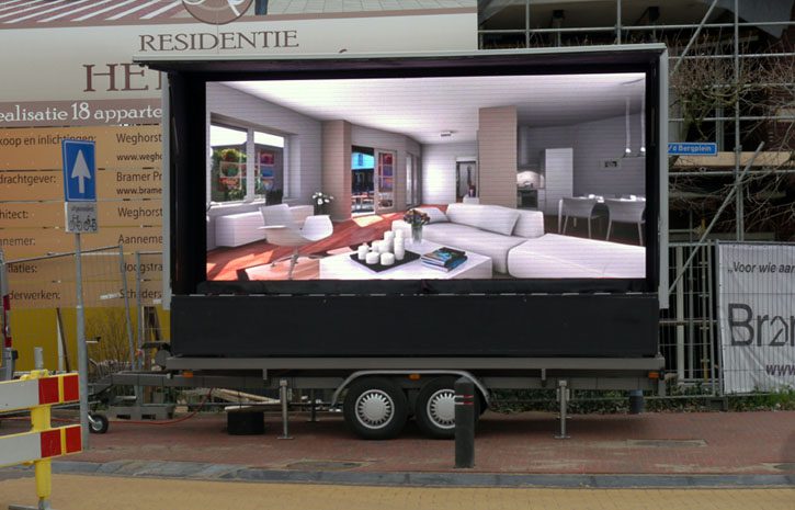 Als wij een mobiel LED scherm verhuren, dan streven wij naar gebruiksvriendelijke oplossingen. Hierin slagen wij meestal met vlag en wimpel slagen. Wij regelen de trailer of aanhanger voorafgaand aan uw event af, waarna u met slechts een druk op de knop kunt bepalen welke beelden u wenst te vertonen. Het enige wat nodig is: Voldoende ruimte, een verharde ondergrond en voldoende elektra capaciteit.