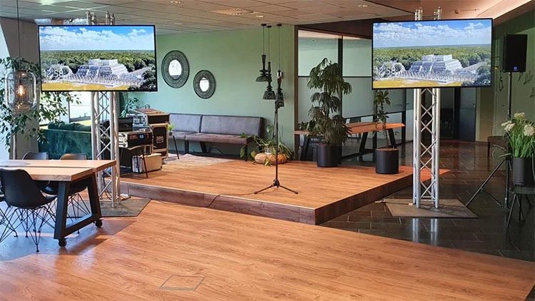 Wij verhuren onze tv monitoren vaak in combinatie met licht, geluid en een podium. Oftewel: Wij kunnen nagenoeg de hele evenemententechniek voor uw project faciliteren. Dit doen wij al ruim dertig jaar lang, door heel Europa. Dankzij onze ervaring weten wij precies wat er mogelijk is en wat er nodig is om bijeenkomsten succesvol te laten verlopen. Hierdoor nemen wij zorgen weg bij organisaties die hier nog niet zoveel ervaring mee hebben.